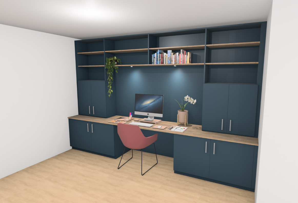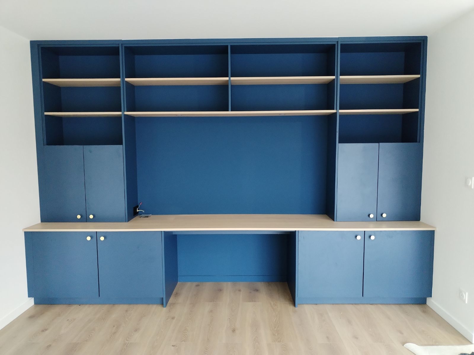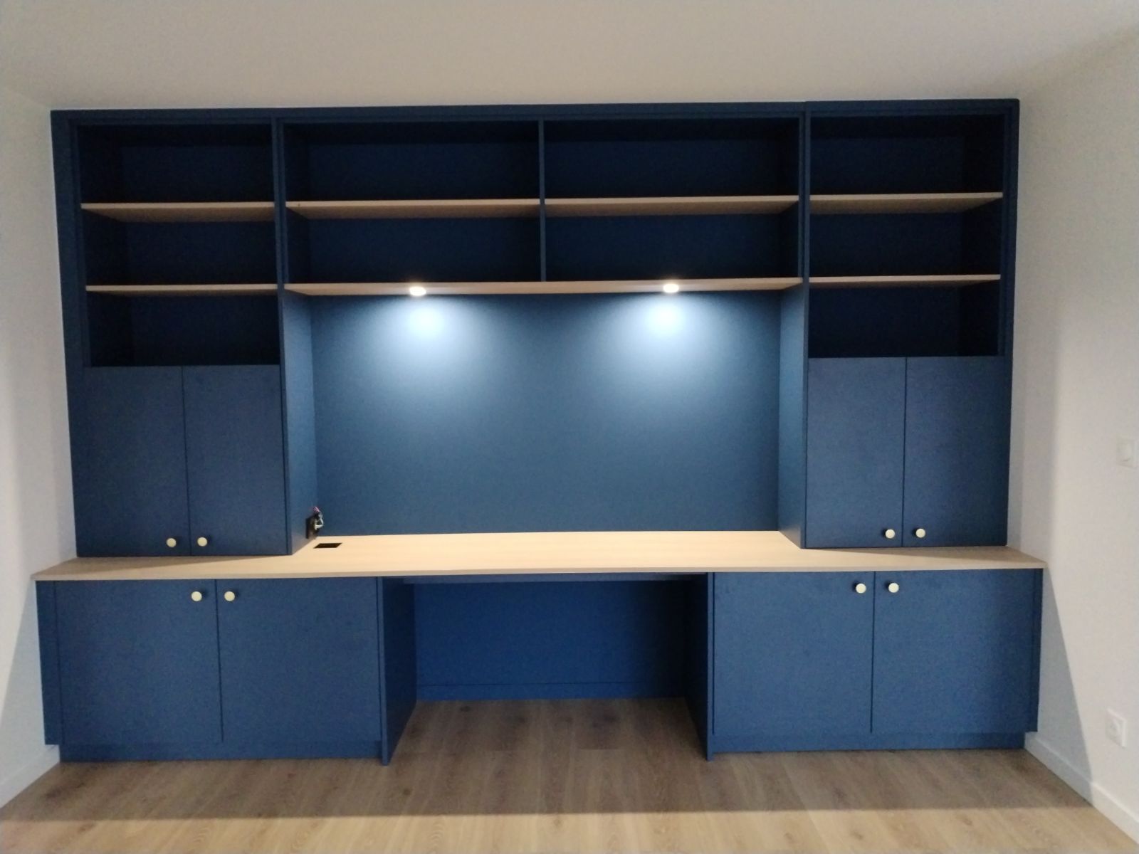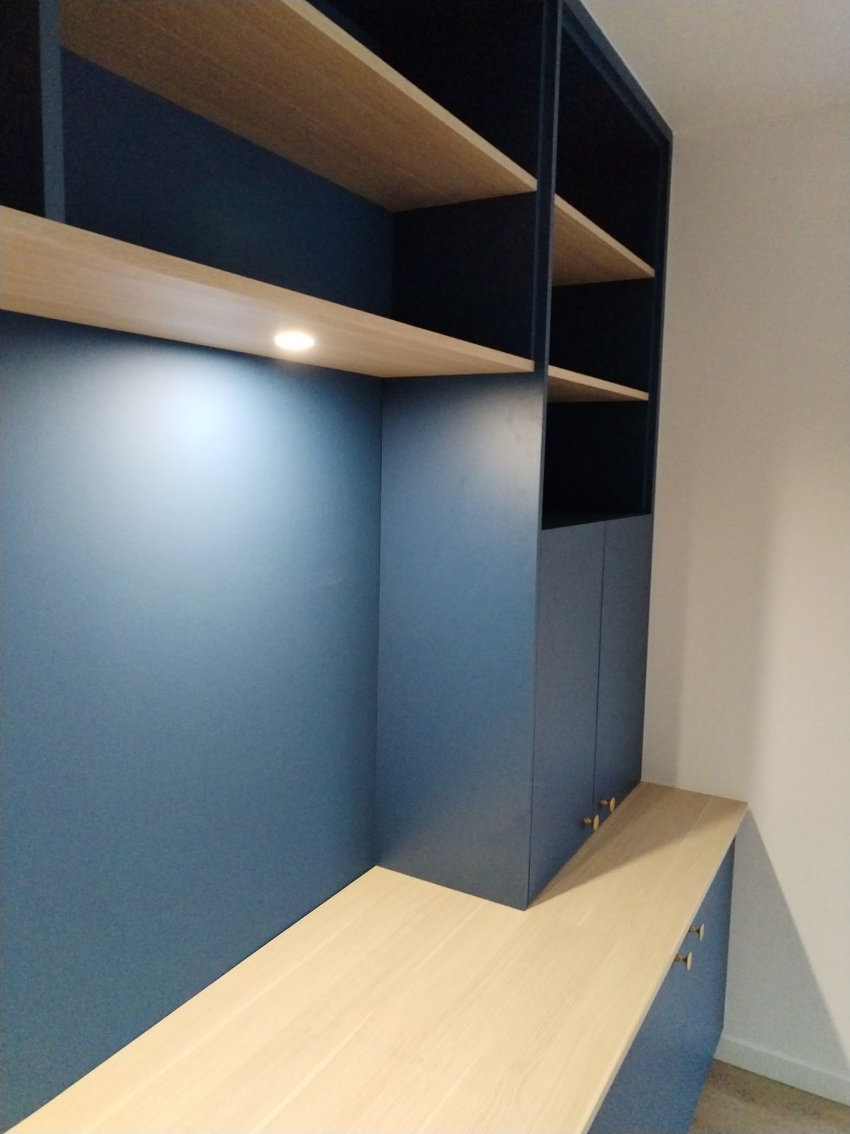 Réalisation : Plateau stratifié, façades mélaminé, éclairage intégré