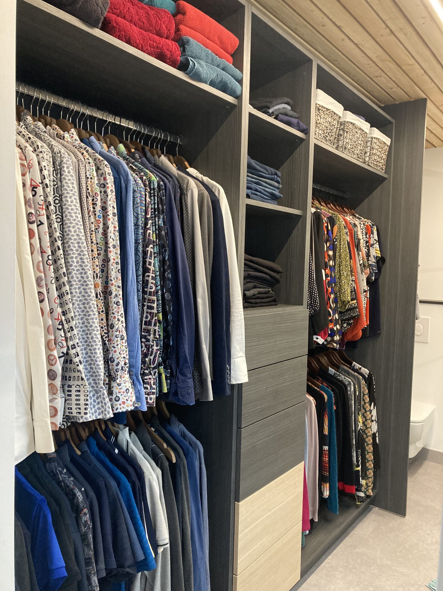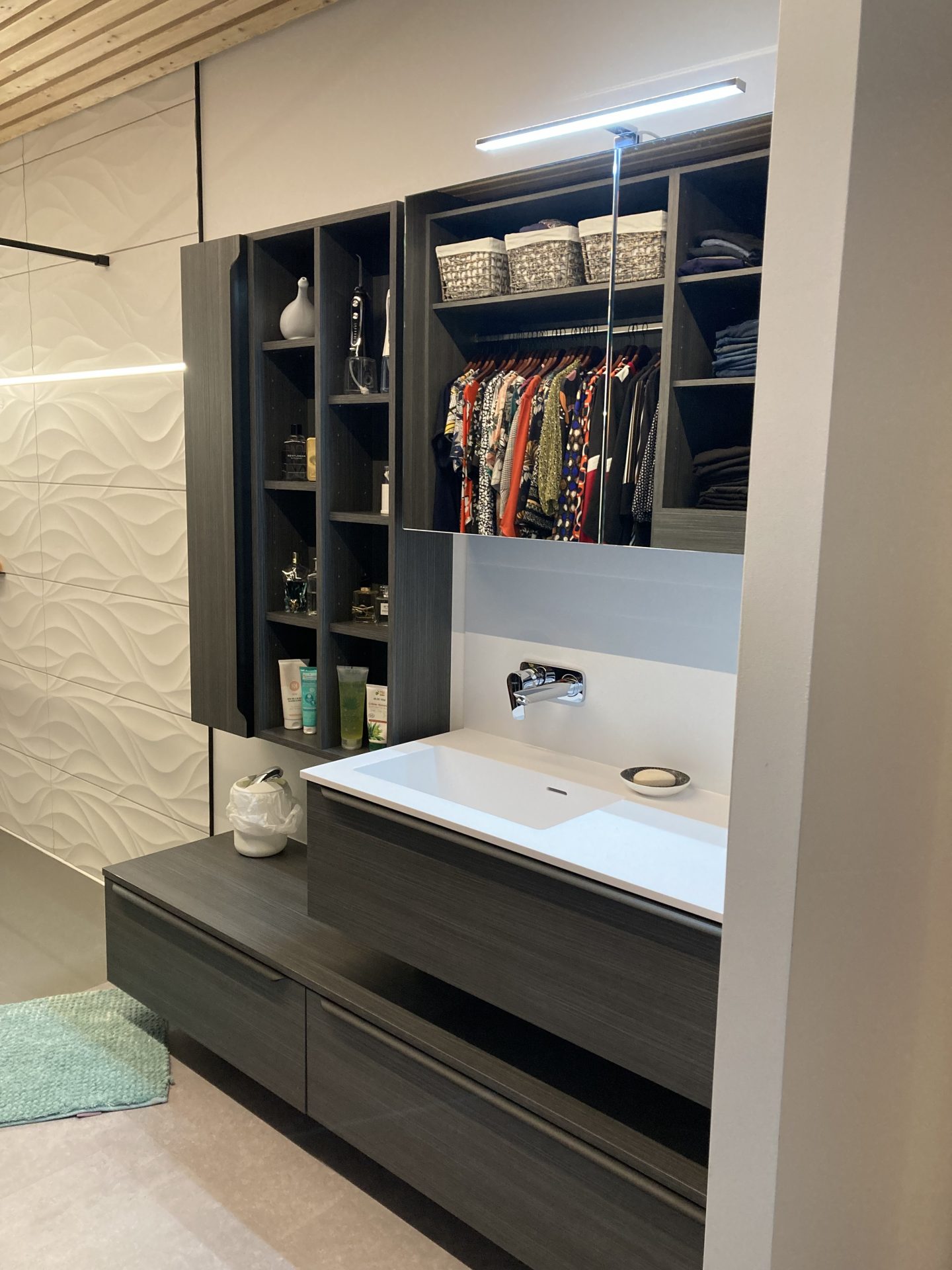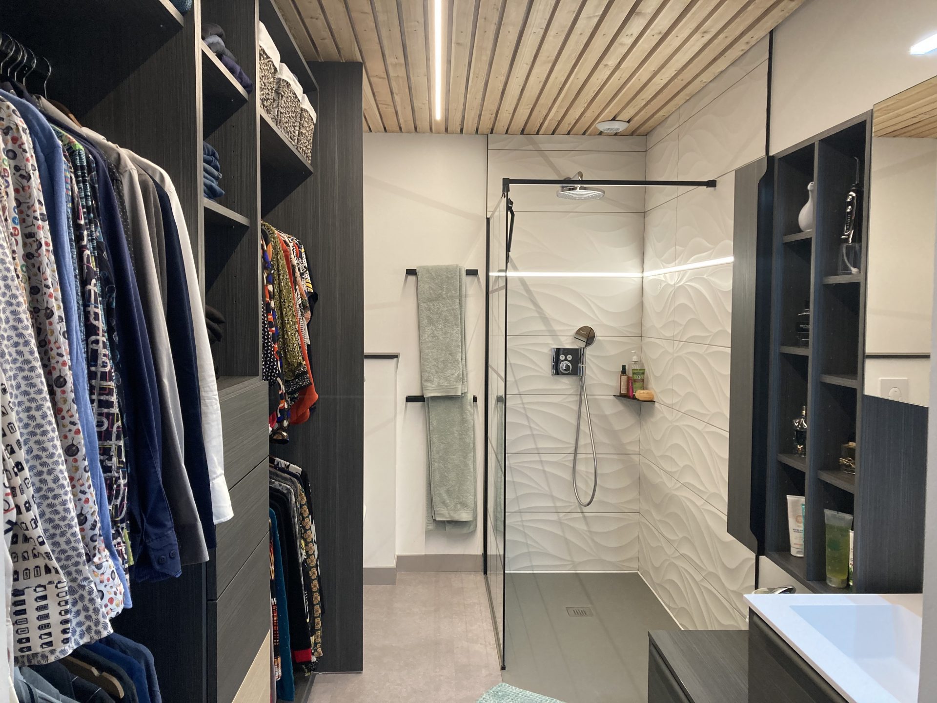 Salle de bain asymétrique et dressing ouvert