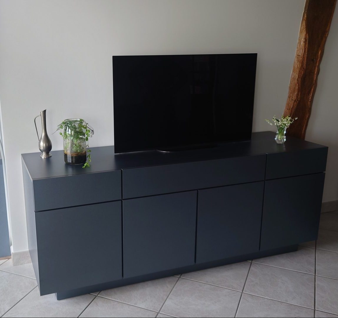 Réalisation : Plateau stratifié, façades mélaminé, claustra mural mélaminé