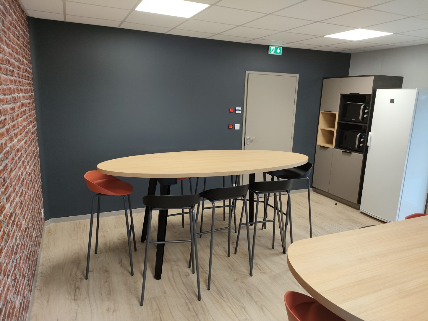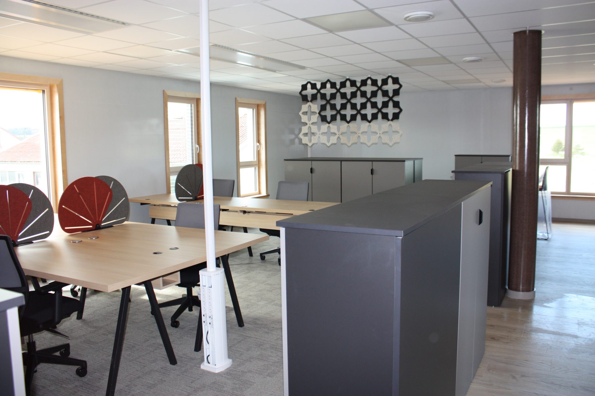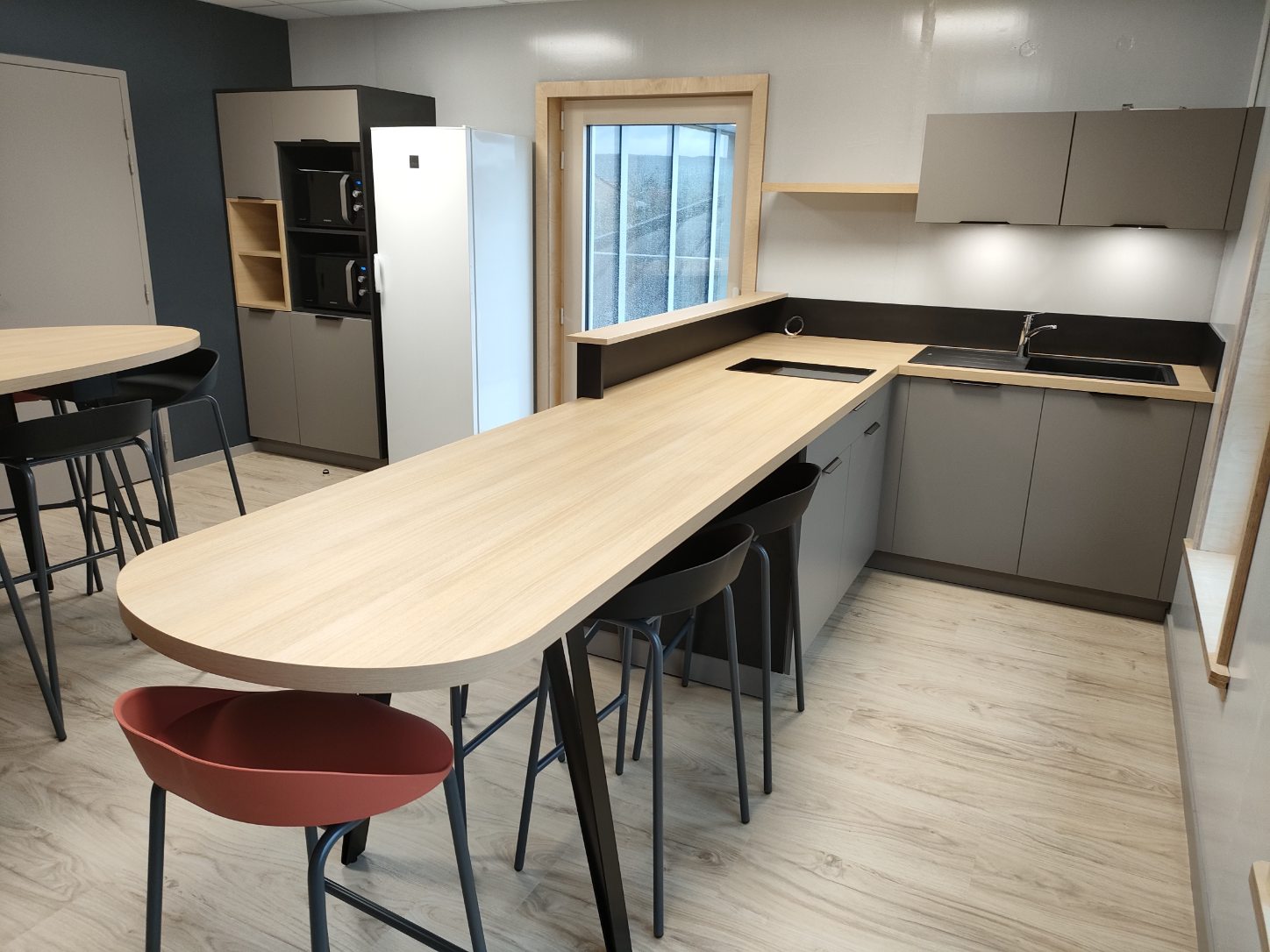 Aménagement pour des bureaux. Fabrication de bureau, d’armoires, d’espace café et d’une cuisine.