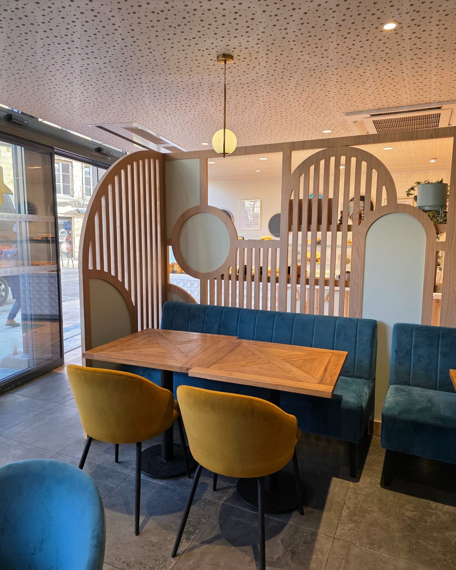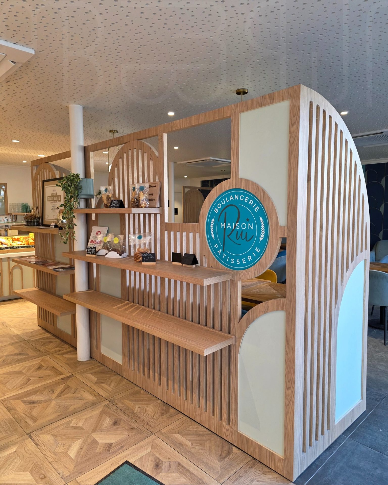 Aménagement d’une boulangerie avec arrières comptoirs, claustras et baguettes murales