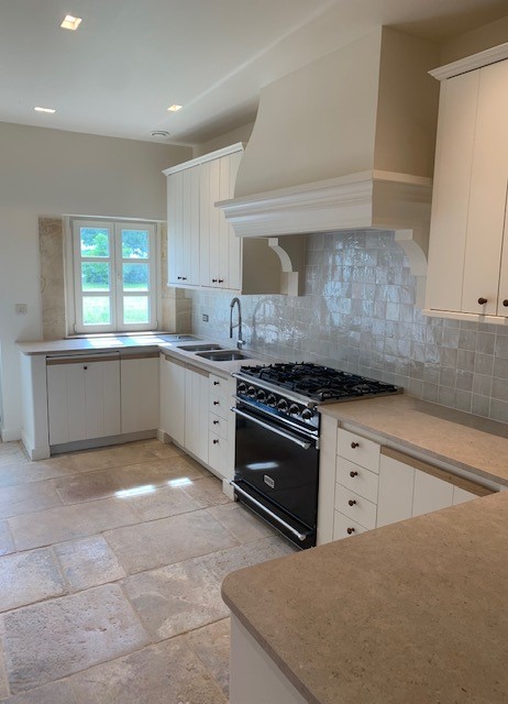 Cuisine sur-mesure réalisée totalement en médium à peindre, à la demande du client, avec défonçage en façade.