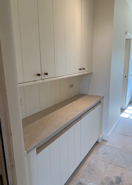 Parements d’habillage dans la continuité des meubles de cuisine.