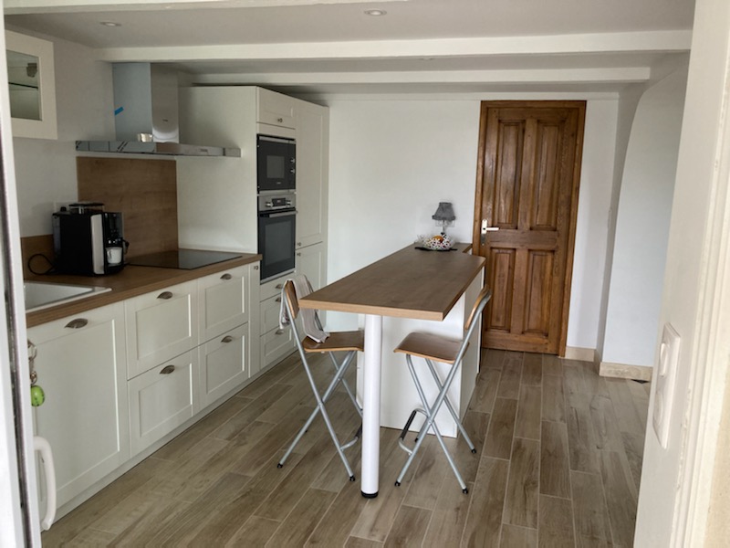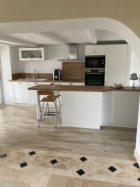 Cuisine blanche et ton bois