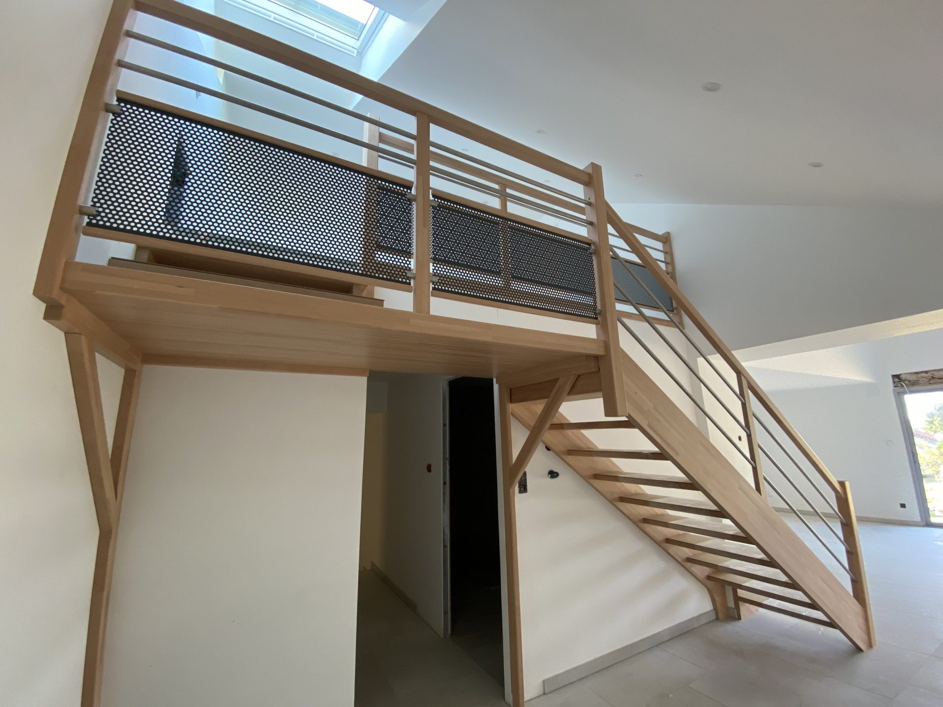 Matériaux : lamellé collé hêtre, tubes inox, tôle perforée laquée