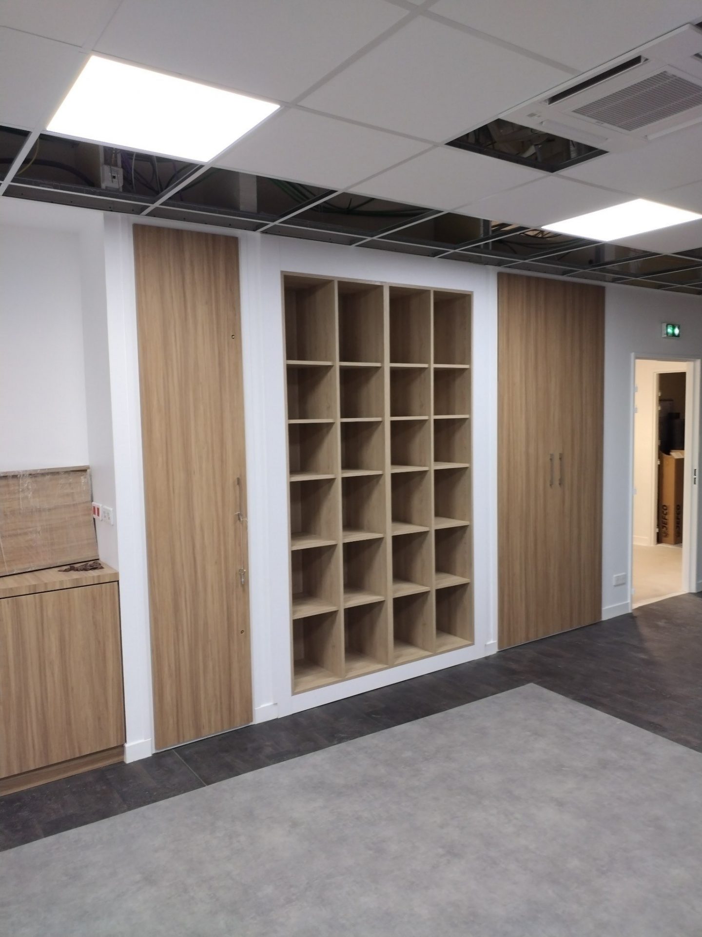 Niche mélaminé entre cloisons placo